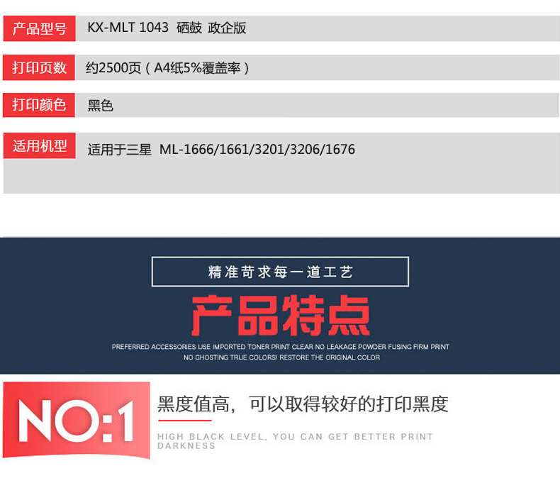 凱欣政企版 KX-MLT 1043 硒鼓 適用于三星 ML-16661661320132061676 全國(guó)統(tǒng)一價(jià):160元