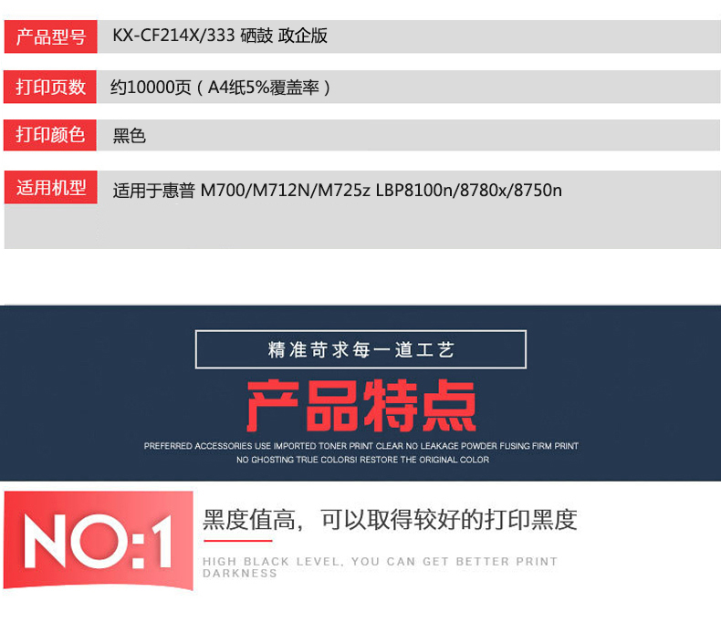 凱欣政企版 KX-CF214X333 硒鼓 適用于惠普 M700M712NM725z 佳能 LBP8100n8780x8750n 全國統(tǒng)一價:236元