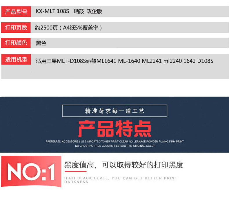 凱欣KX-MLT108S 適用三星MLT-D108S硒鼓ML1641 ML-1640 ML2241激光打印機(jī)墨盒ml2240 全國(guó)統(tǒng)一價(jià):295元