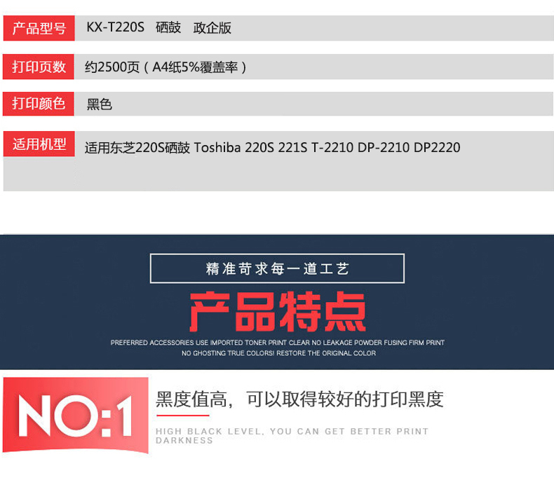 凱欣KX-T220S 適用東芝220S硒鼓 Toshiba 220S 221S打印機墨盒 易加粉T-2210墨粉盒DP-2210曬鼓DP2220碳粉盒 全國統(tǒng)一價:195元