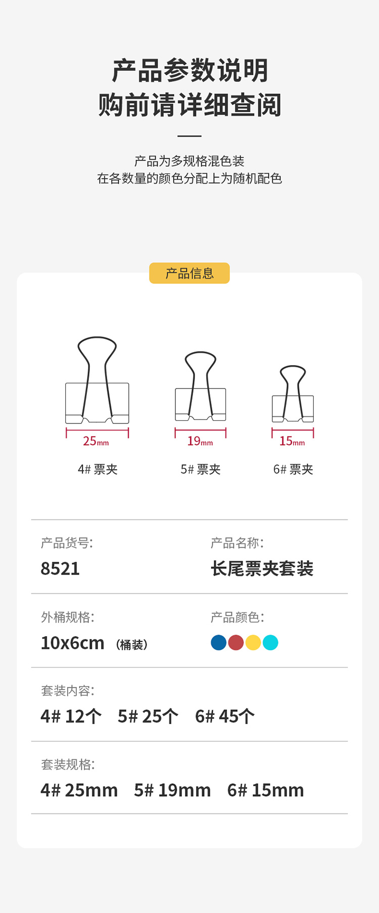 得力8521組合裝彩色長尾夾 全國統(tǒng)一價:16元