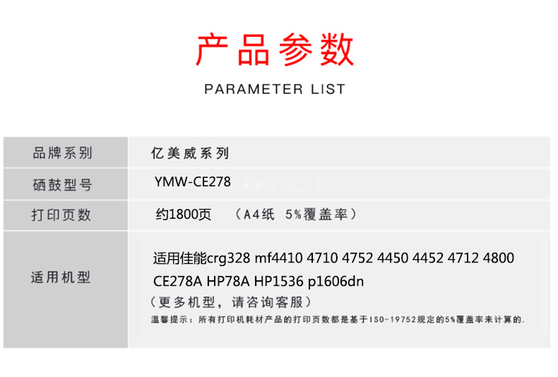 億美威 YMW-CE278 惠普 LaserJet Pro P1566/1606/1536 全國統(tǒng)一價(jià):178元
